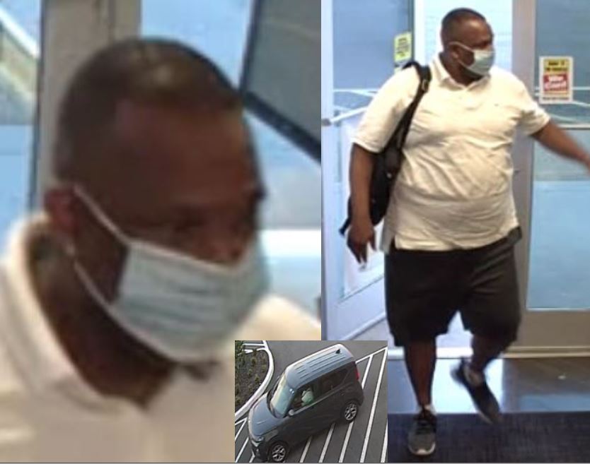 The suspect arrived in a gray Kia Soul, carrying a backpack.