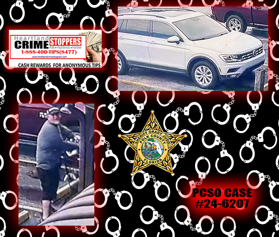If you recognize this person or the vehicle, or you have any information about this case that could be helpful, please contact Detective Mitchell at (863) 577-1600 or SMitchell@polksheriff.org