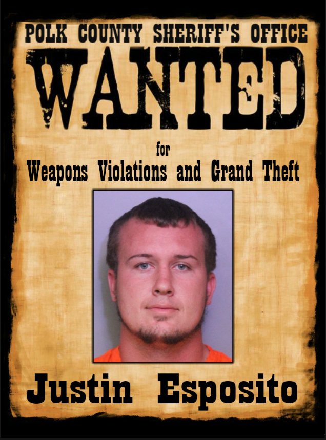 If you have any information regarding the whereabouts of Justin Esposito, please contact Deputy John London of the Polk County Sheriff's Office at 863-297-1100 or If you wish to remain anonymous, contact Heartland Crime